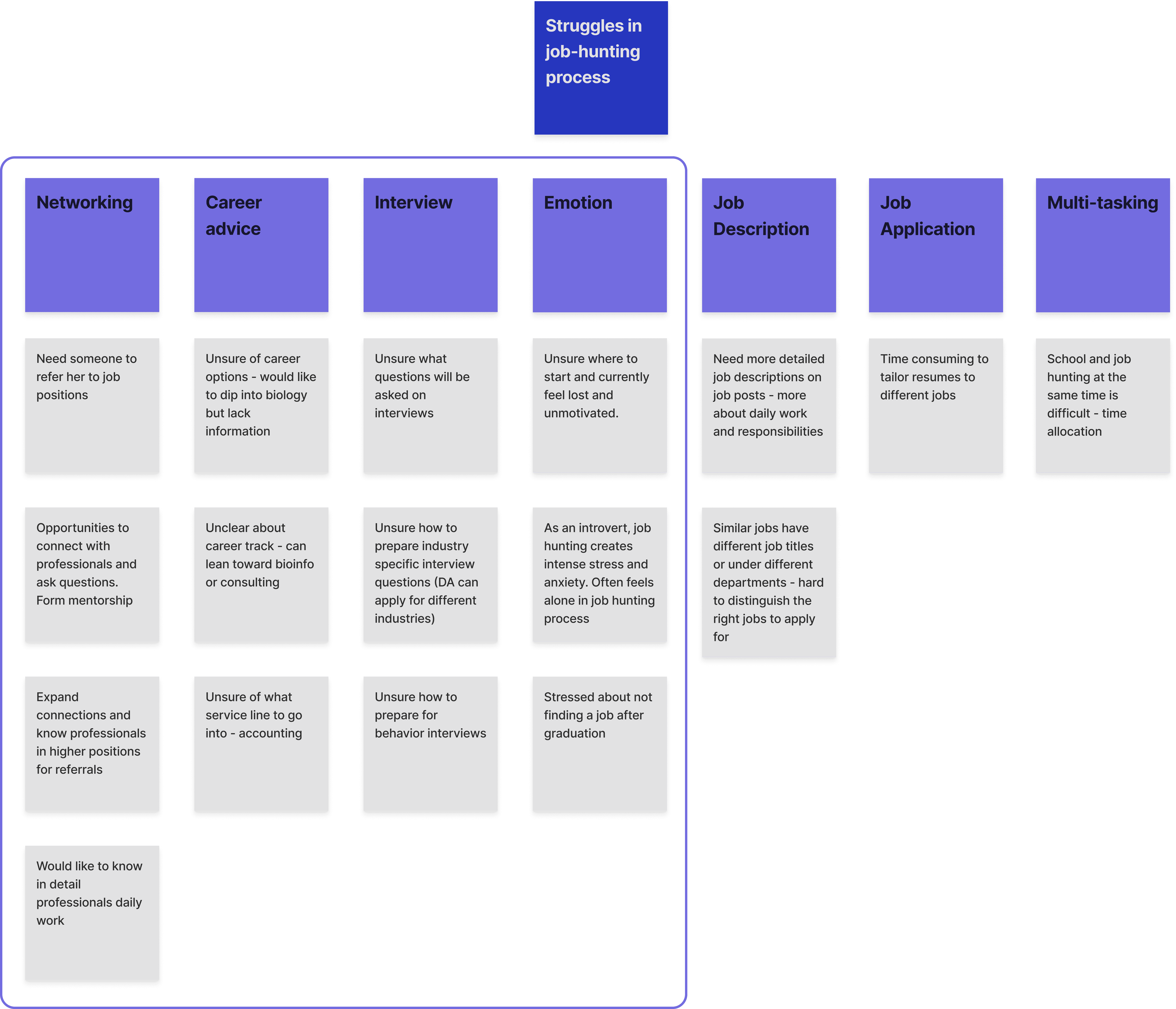 To better understand the job-hunting struggles, I conducted in-depth interviews on 10 college students from Carnegie Mellon University and University of Pittsburgh.